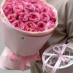 Монобукет из Английских садовых роз в премиальном оформлении + подарочная коробка королевских фиников в бельгийском шоколаде