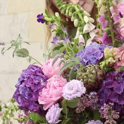 Авторский букет с розами Мента, пионовидными кустовыми розами, маттиолой и эустомой