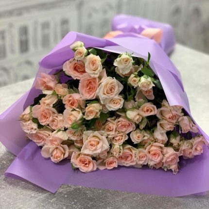 Букет из кустовой розы, макаронс и шоколадных букв в декоративной коробке “Подарок Маме”