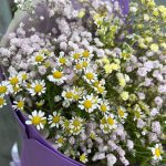 Лента атласная – 1 шт.Матрикария – 4 шт.Упаковка дизайнерская – 2 шт.гипсофила радужная – 3 шт.