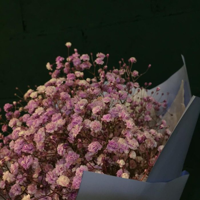 “Сиреневый туман” – композиция из гипсофилы в шляпной коробке