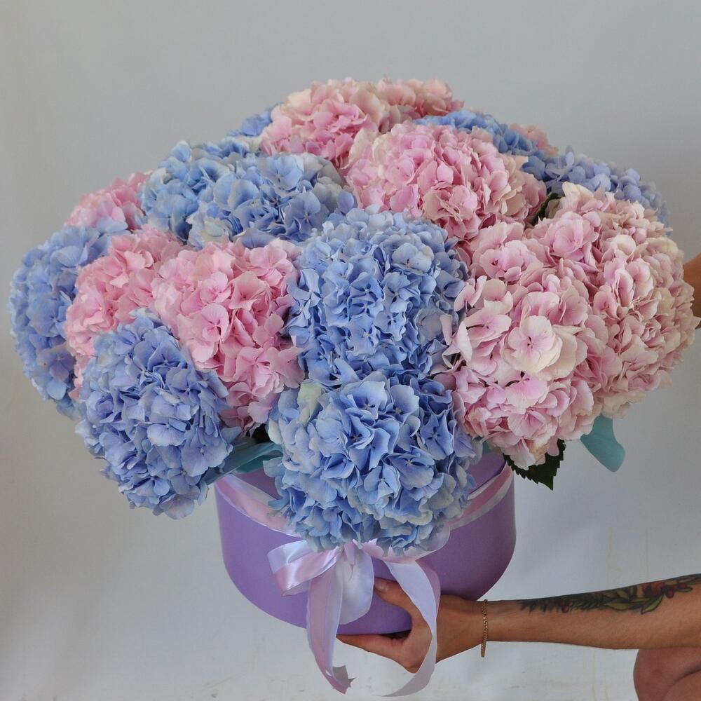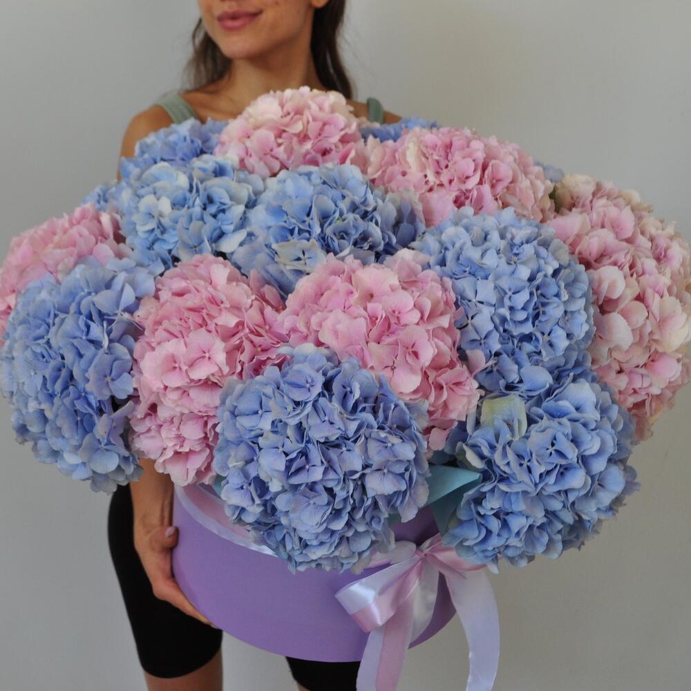 Гортензия, 21 штучка. Большой букет в коробке
