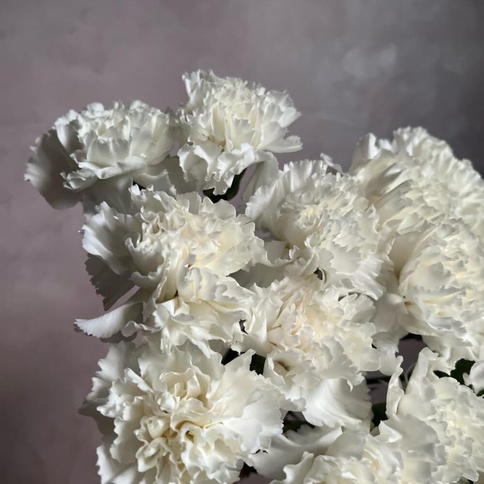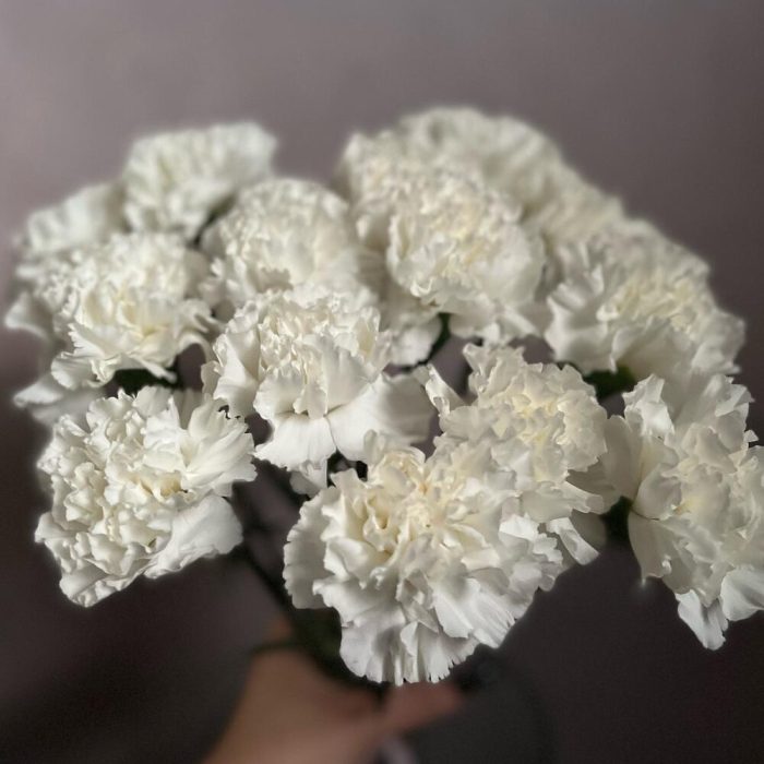 белые диантусы – 15 шт.Атласная лента – 1 шт.