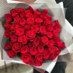 Роскошный букет из 101 красной розы. Букет 158 ALMOND ROSES
