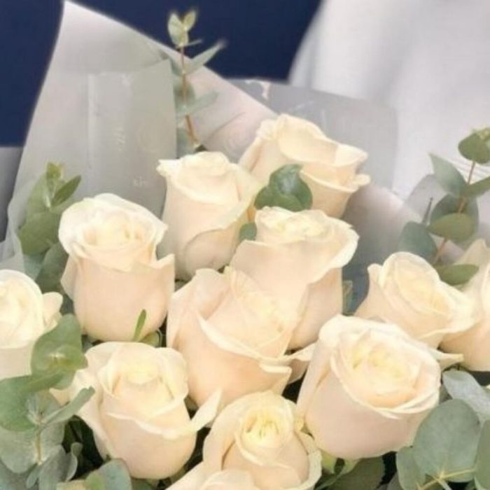 Роза – 15 шт.Упаковка дизайнерская – 3 шт.Лента атласная – 2 шт.зелень декоративная – 2 шт.