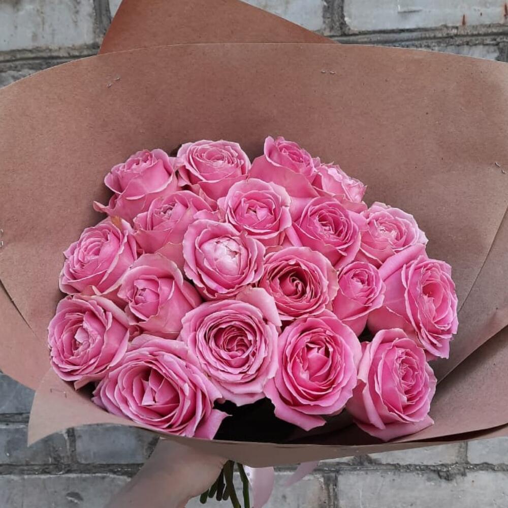 Букет из 19 Розовых Роз в крафте
