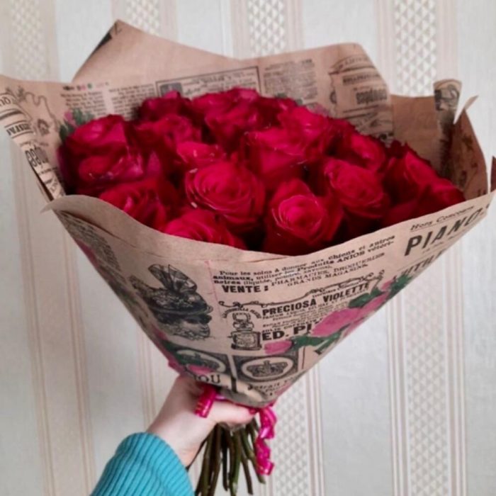Букет из 25 красных роз длиной 40 см