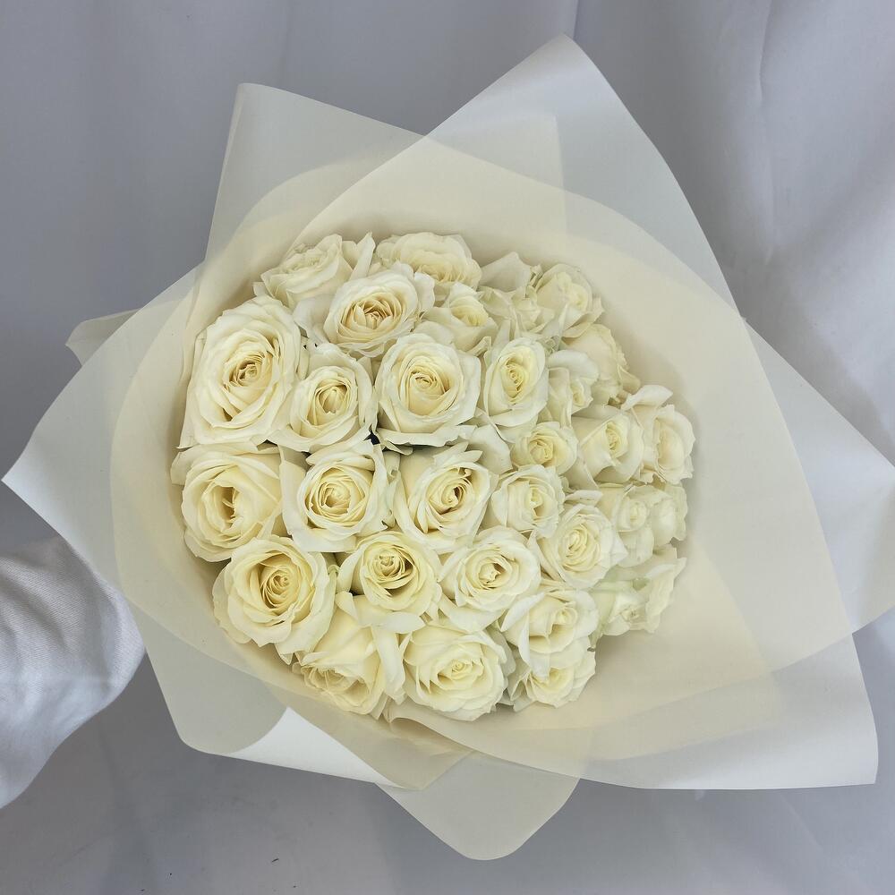 Роза – 31 шт.Упаковка – 3 шт.Атласная лента – 1 шт.
