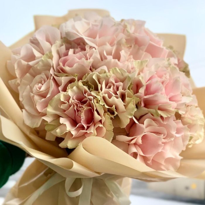 Гвоздики, Лизиантусы, Розы, Тюльпаны